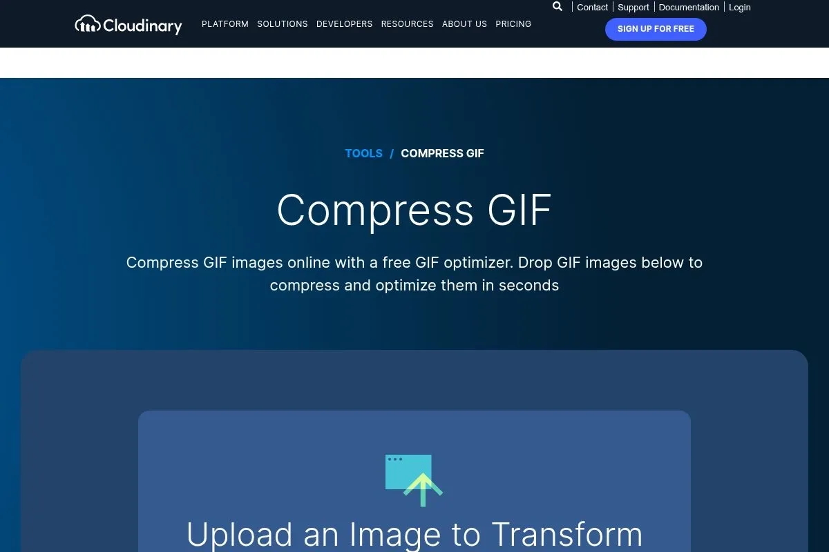 Cloudinary's GIF Compressor offers a blend of efficiency and customization, making it a solid choice for optimizing animated GIFs. By leveraging intelligent algorithms, it reduces file sizes by 10% to 50% while maintaining impressive visual fidelity.