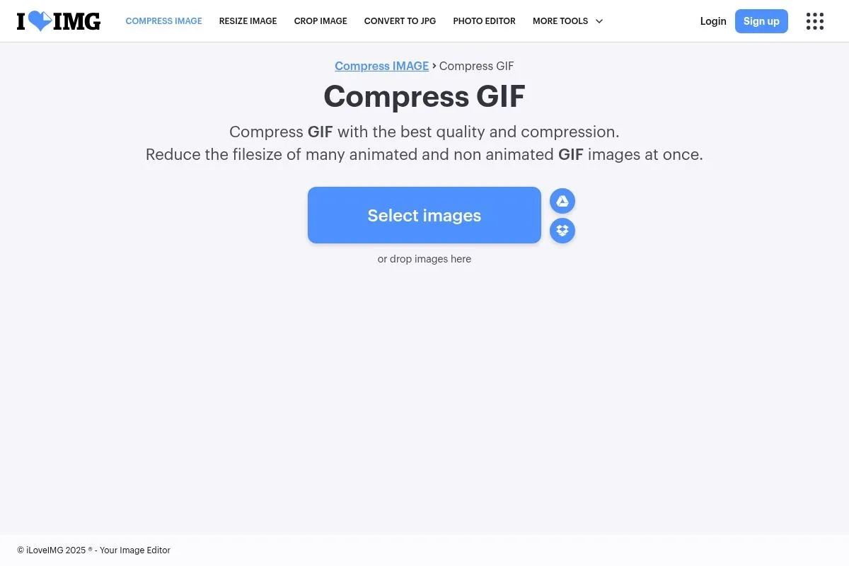 The tool supports batch processing, so you can handle multiple GIFs at once, great for tackling large projects or saving time. Direct integration with the broader iLoveIMG suite adds versatility, letting you resize, convert, and edit images alongside compressing GIFs, which is a handy bonus for creators juggling different tasks.
