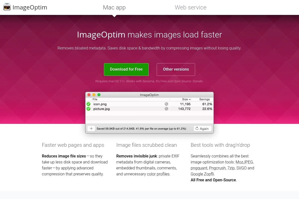 Available for macOS 10.9 and later, ImageOptim offers a clean drag-and-drop interface that's easy to navigate.