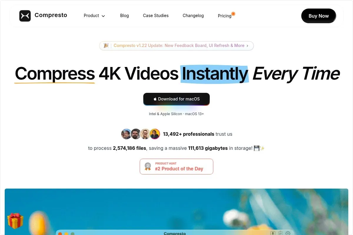 Built specifically for macOS 13 and later, Compresto integrates seamlessly with Apple Silicon and Intel Macs. Its drag-and-drop interface brings both simplicity and power together.