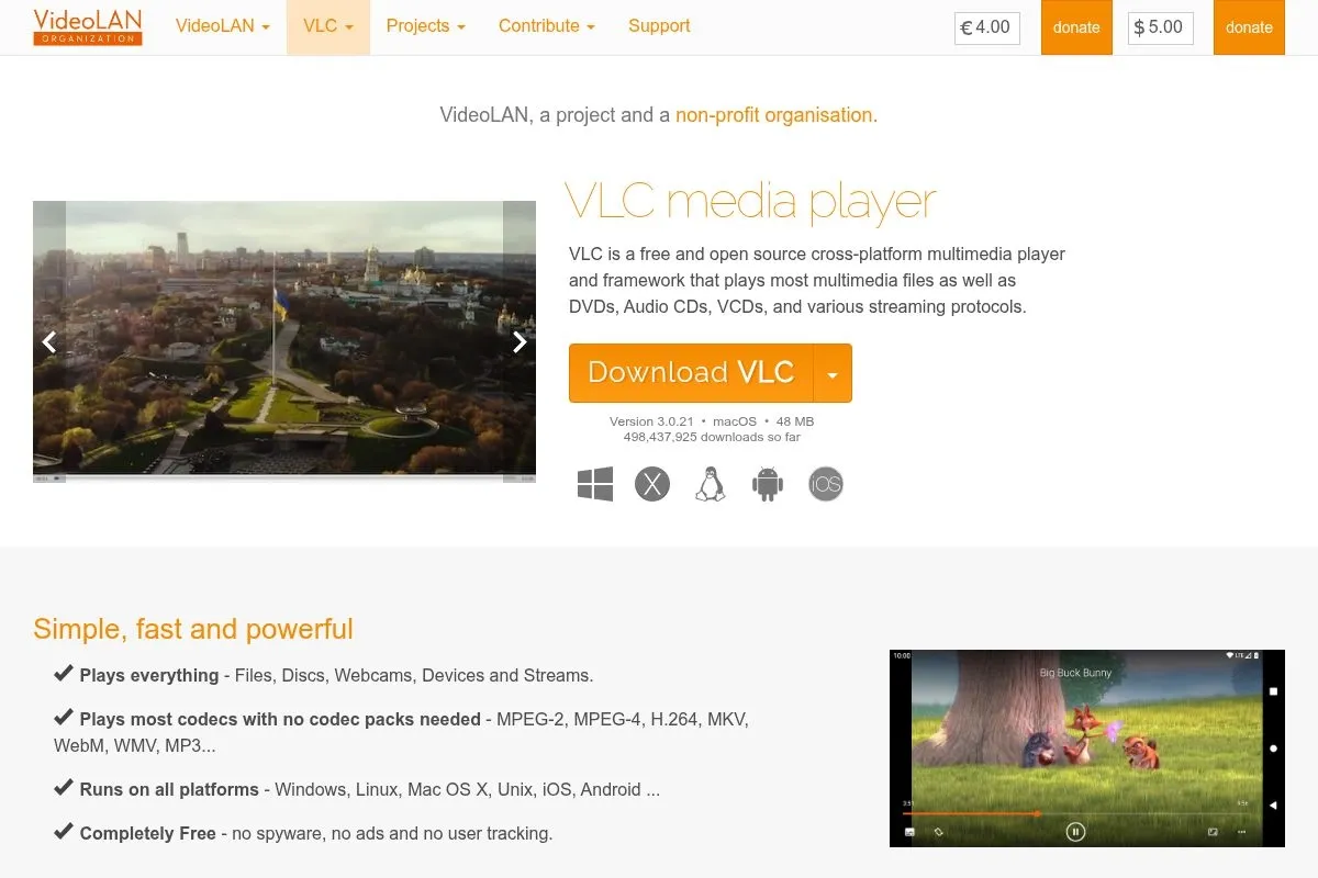 [2. VideoLAN VLC Media player](https://www.videolan.org/vlc/)