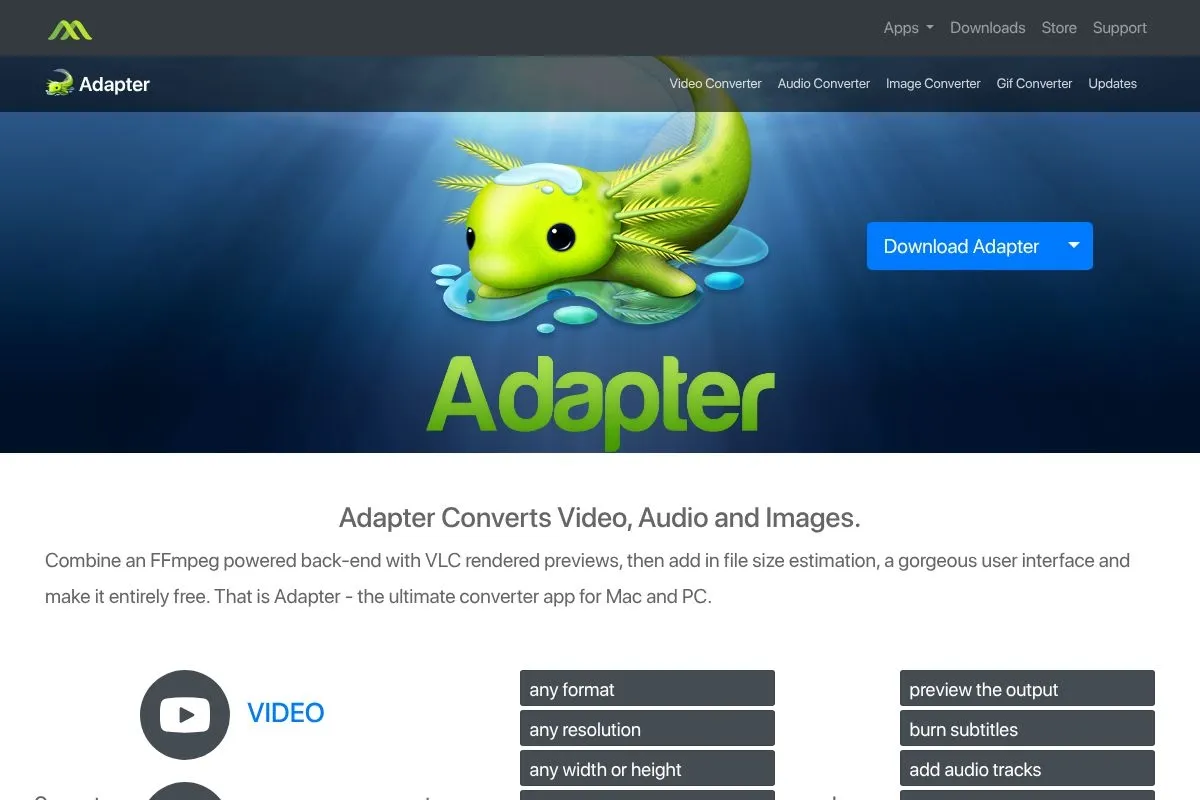 Adapter is a free and lightweight video converter that covers a wide variety of formats. It supports popular video types like AVI, MP4, FLV, and MPEG, alongside audio formats such as MP3, M4A, and AAC. Additionally, it handles images, making it an all-in-one tool for converting JPGs, PNGs, and GIFs.