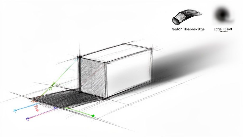 - Noise: A perfectly smooth digital shadow can sometimes feel a bit sterile. Adding just a tiny amount of noise—think 1-3%—introduces a subtle texture that helps the shadow feel more organic and integrated into the background. If digital noise is a problem elsewhere in your image, our guide on how to fix grainy photos might come in handy.