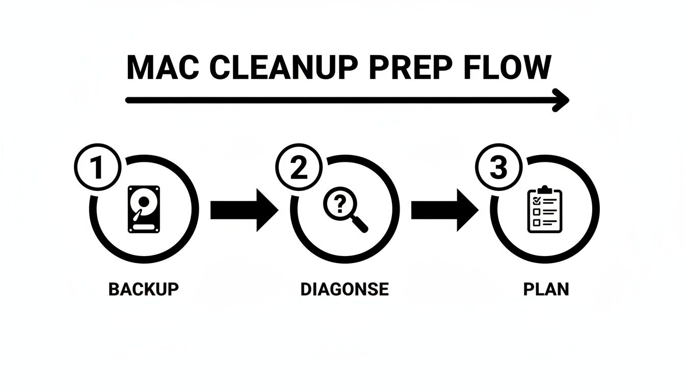 The absolute first step is safety. Before you change a single thing, run a full system backup. Time Machine is built-in and works great, but any trusted solution will do. Think of it as your digital insurance policy—a complete safety net that lets you restore any file you might accidentally toss. You hope you won't need it, but you'll be incredibly glad it's there if you do.
