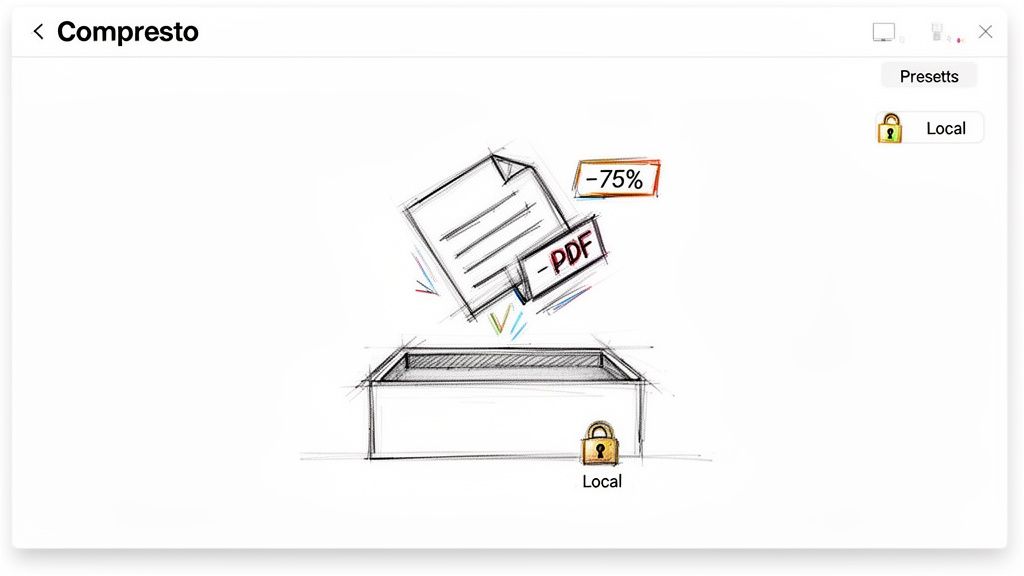 When you need to shrink a PDF without turning it into a blurry mess, the built-in macOS tools often don't cut it. They're fine for a quick, rough trim, but for anything that needs to look professional, you'll want a dedicated app. This is exactly where Compresto comes in. It's designed specifically to compress PDF size on a Mac without the quality headaches, bridging the gap between Preview's blunt approach and the hassle of command-line tools.