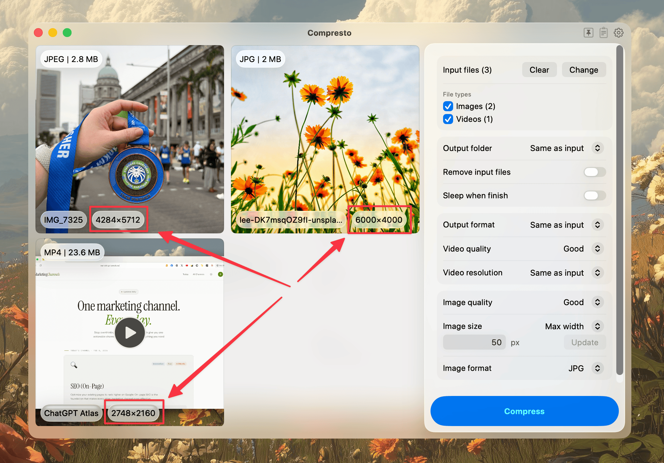 Compresto can now rename your files based on their actual content using OpenAI's vision API. Drop in a batch of images and get meaningful, descriptive filenames instead of IMG_0001.