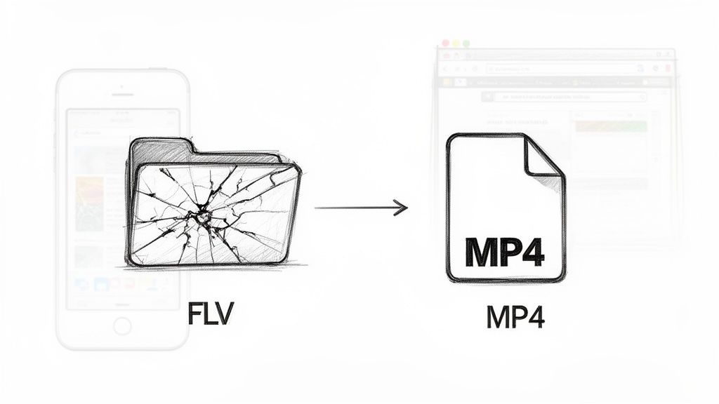 The bottom line is that FLV, an old format from the Adobe Flash era, just doesn't work on modern browsers or devices like iPhones. Converting to the universally compatible MP4 format is no longer optional—it's essential.
