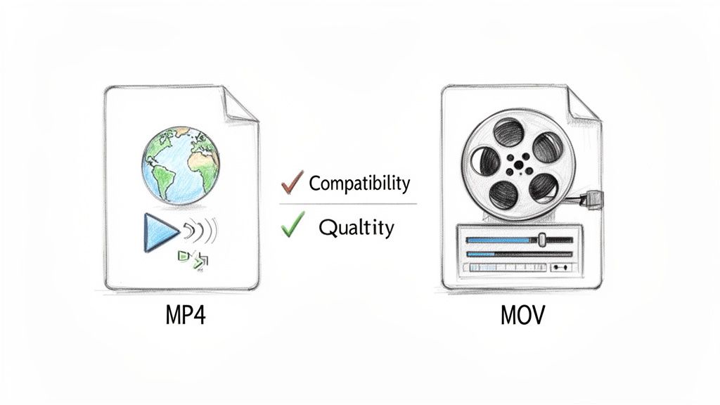 It's easy to get lost in the technical weeds, but your choice between MP4 and MOV really depends on where you are in your workflow. Think of your MOV file as the high-fidelity "master tape" and the MP4 as the final version you send out for the world to see. One is designed for data-rich editing suites, while the other is optimized to play flawlessly anywhere.