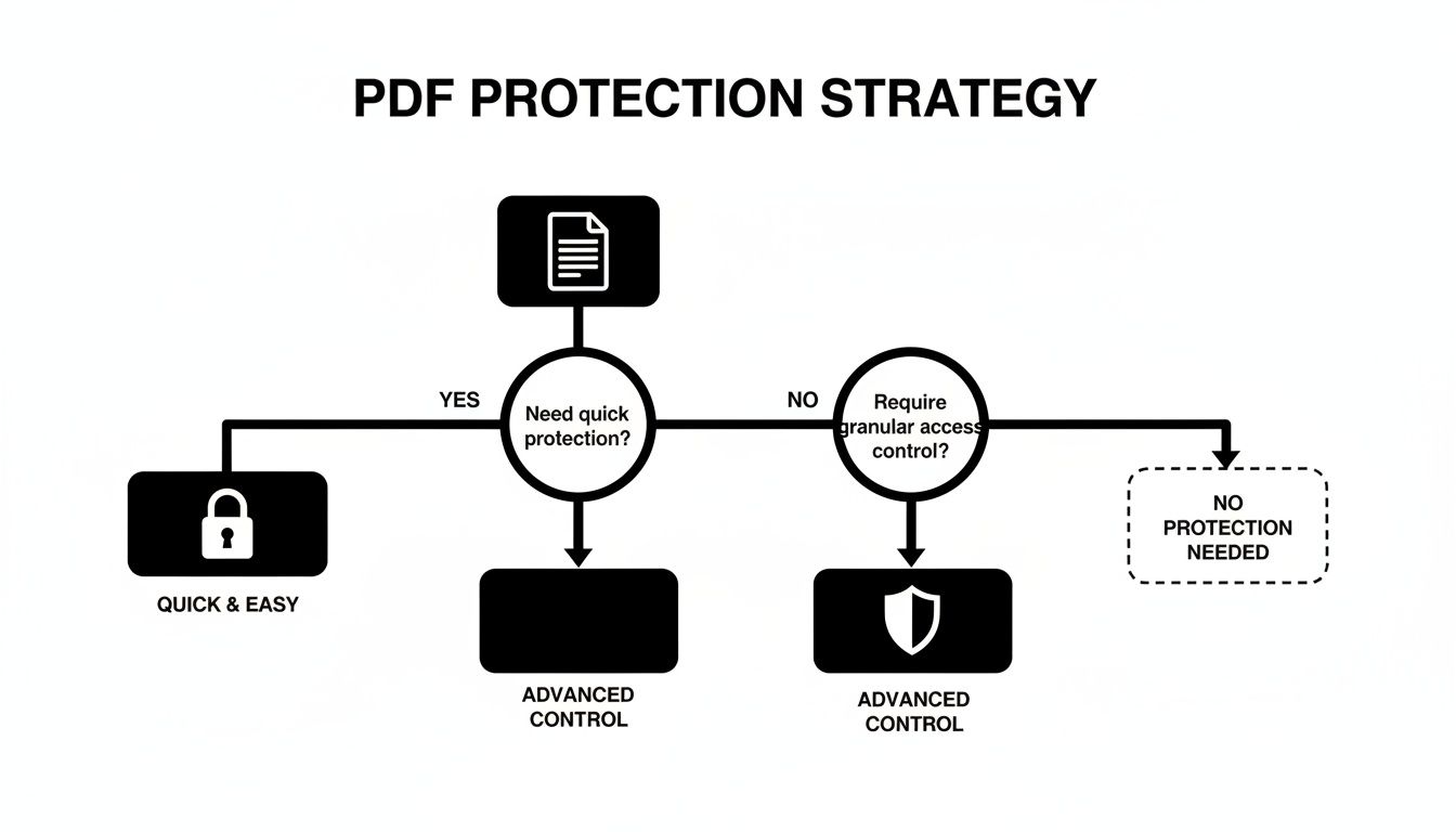 This quick decision tree breaks down the two main paths for protecting a PDF on a Mac—from fast, simple methods to more advanced permission controls.
