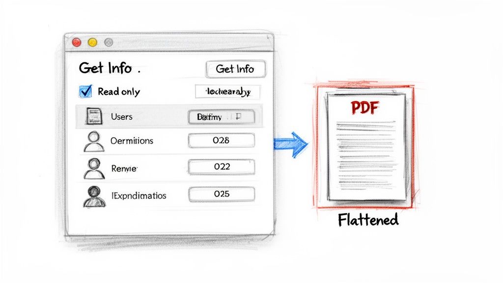 Sometimes you don't need a dedicated, heavy-duty application. macOS itself has some clever, built-in ways to make a PDF read-only. These system-level tricks are perfect when you need a quick solution on the fly or want to protect files being shared among different users on the same machine.