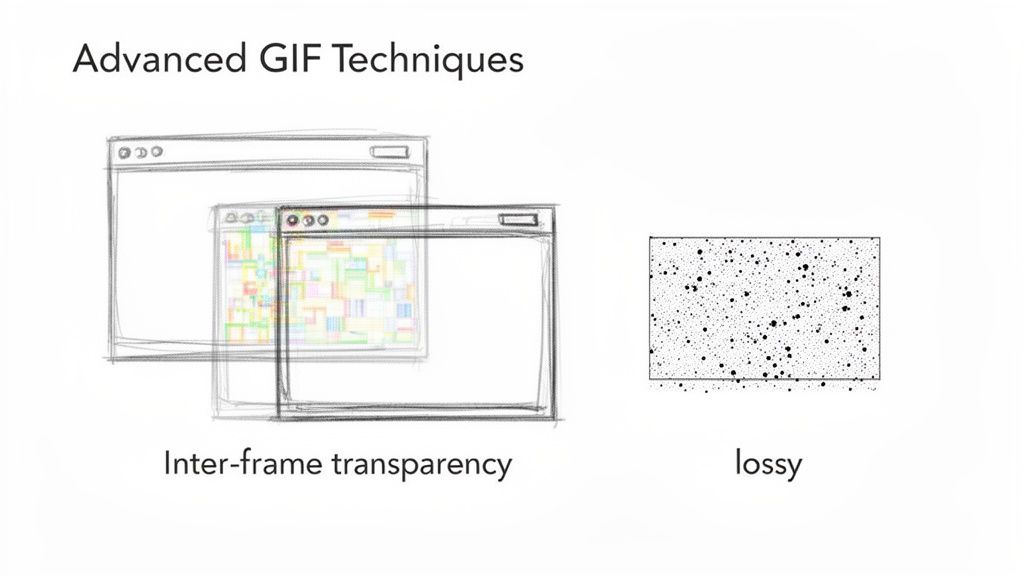 Here's another expert-level technique that can be a total game-changer: optimizing with inter-frame transparency. This method is pure magic for GIFs with static backgrounds, like a screen recording where only the cursor and a menu are moving.