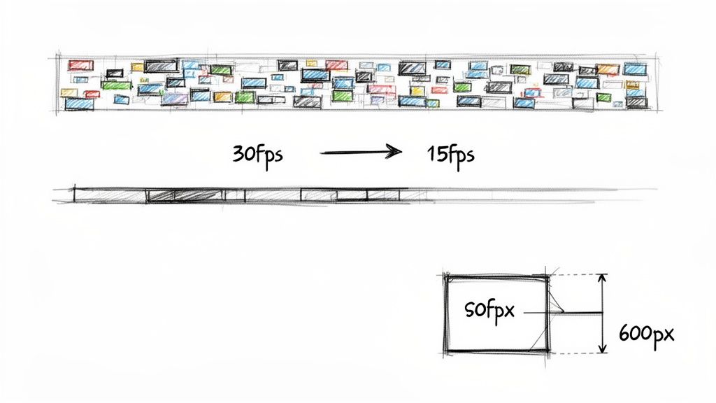 This isn’t just a tiny tweak; it’s a foundational technique. Halving the frame count, say from a 30 fps source down to 15 fps, usually cuts the file size by a whopping 40–60%. When you start stacking this with other adjustments like smart cropping, it’s not unusual to see file-size reductions in the 60–85% range.