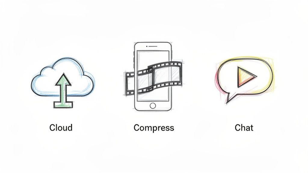 Key Takeaway: By compressing a video before sending, you're creating a file that’s already optimized for messaging. This stops your phone from doing its own destructive, last-minute compression and ensures the video arrives looking crisp and clear.