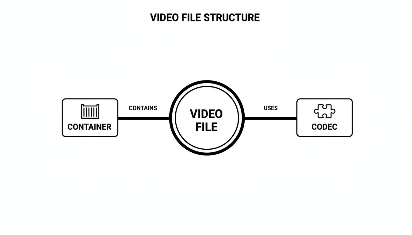 As you can see, every video file is built from these two fundamental parts: a container to hold all the data and a codec to manage it. Think of it as a lunchbox (the container) and the individual food items inside (the codec-compressed data).