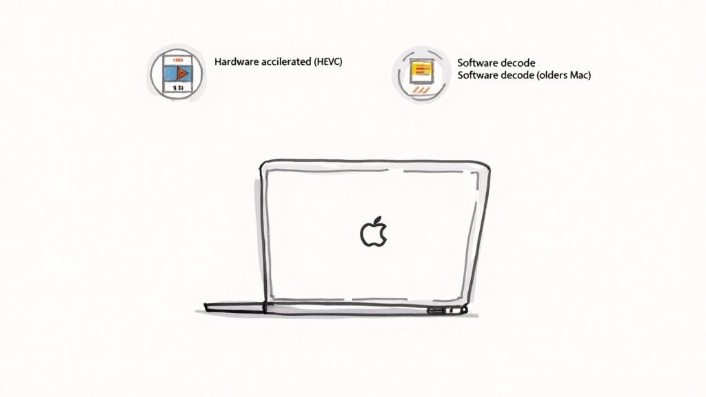 At the heart of it all is hardware acceleration. Think of it as a dedicated, super-fast assembly line built right into your Mac with just one job: decoding video. When a video uses a codec your Mac has a special chip for, playback is buttery smooth. The main processor (your CPU) barely has to lift a finger, freeing it up for everything else you're doing.