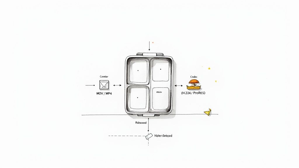 Think of it like this: a container is the lunchbox, and the codec is the recipe used to prepare the food inside. You need both, and they have to work together. Getting a grip on this partnership is the key to mastering Mac video file formats.