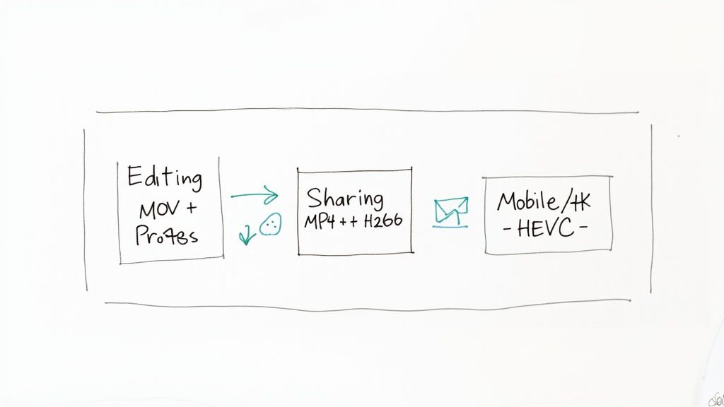 Knowing the difference between a container and a codec is one thing, but the real magic happens when you know exactly which Mac video file format to pick for the job at hand. This choice isn't just a technical detail—it directly impacts your editing speed, final file size, and whether anyone can actually watch your video.