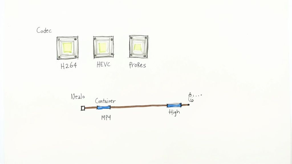 Jumping into video compression can feel like learning a new language. You’re suddenly hit with a wall of acronyms like HEVC, H.264, MP4, and MOV. Getting a handle on these terms is the key to making smart decisions and finding that perfect sweet spot between file size and quality.